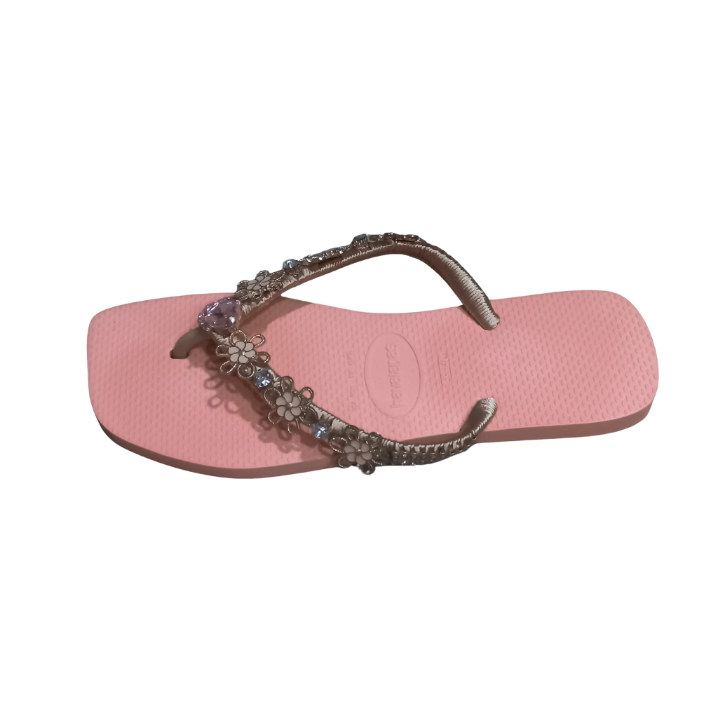 Solado em Rosa Bebê com tiras em um Bege clarinho, criando um contraste suave e elegante.